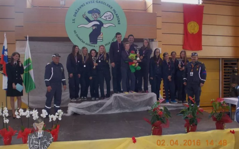 V soboto 2.4.2016 je v Stični, Občina Ivančna Gorica, potekal 15. državni kviz gasilske mladine. Iz GZ Škofljica so se tekmovanja udeležile 3 ekipe in sicer pionirke iz PGD Želimlje in dve ekipi mladincev iz PGD Pijava Gorica. Zopet lahko poročamo o odličnih rezultatih. Pionirke Neža, Eva in Anja z mentorico Janjo so v konkurenci 39. pionirskih ekip osvojile odlično 3. mesto. V konkurenci mladincev je tekmovalo prav tako 39. ekip. Druga ekipa iz PGD Pijava Gorica Manca, Leo in Lori z mentorico Petro so osvojili 21. mesto, medtem ko so Nika, Maja in Katja z mentorico Lariso osvojile odlično 2. mesto. Čestitke vsem tekmovalcem in mentorjem za vložen trud in čas. Na tekmovanju so imeli tekmovalci iz GZ Škofljica tudi glasne navijače. Tudi njim pohvala za glasno navijanje in spodbujanje.
