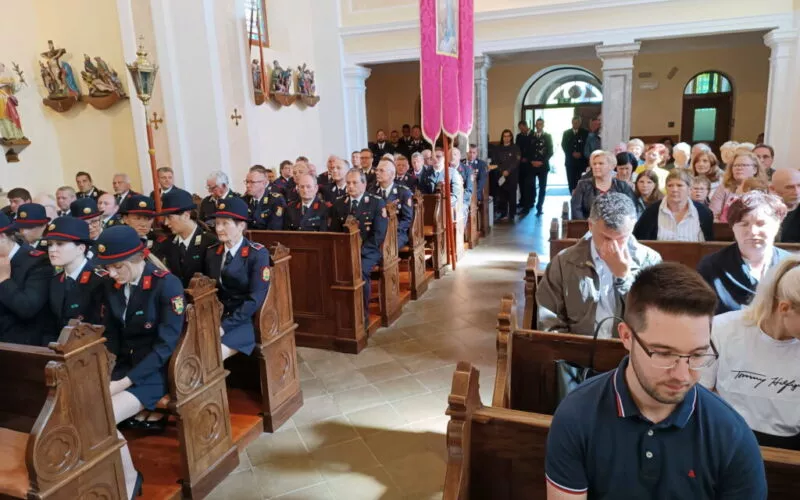 Župnijska cerkev Svetega Vida je bila lepo popolnjena, zbralo se je preko 60 gasilcev in gasilk.